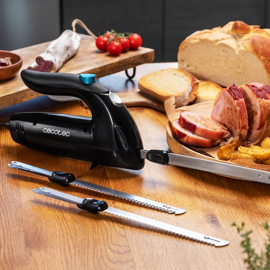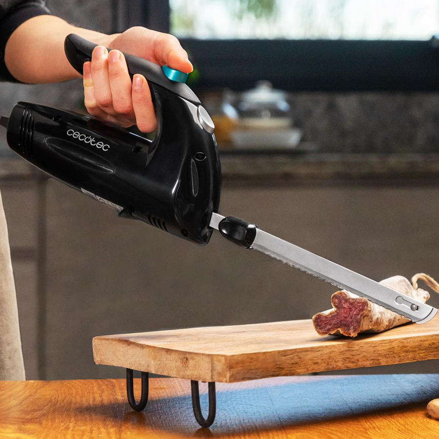 Corta os teus alimentos com a faca elétrica da CECOTEC Cut-Eat 1800 Black. Garante um corte limpo e preciso de pão, carne, fruta, legumes e muito mais. Design e botões ergonómicos que facilitam uma utilização cómoda, fácil e sem desgaste.